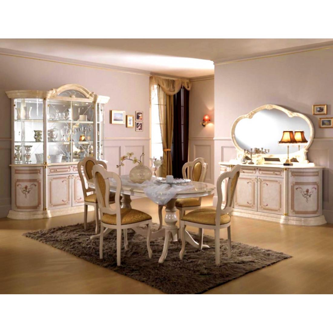 Шкаф-витрина четырехдверный Роза (беж)