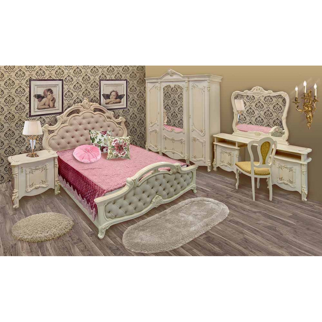 Спальня Рафаэлла от Российской фабрики «ДИА мебель», выполнена в элегантно нежном бежевом цвете. Такая спальня в сочетании с глянцевым покрытием и резной вставкой придаст незабываемую атмосферу роскоши. Большая комфортабельная кровать окунет Вас в незабываемый крепкий сон. Объемный четырехстворчатый шкаф поможет забыть о лишних вещах и сделать комнату многофункциональной. Большое зеркало визуально расширит пространство. Вся коллекция «Рафаэлла» предназначена для людей умеющих по достоинству оценить комфорт.
