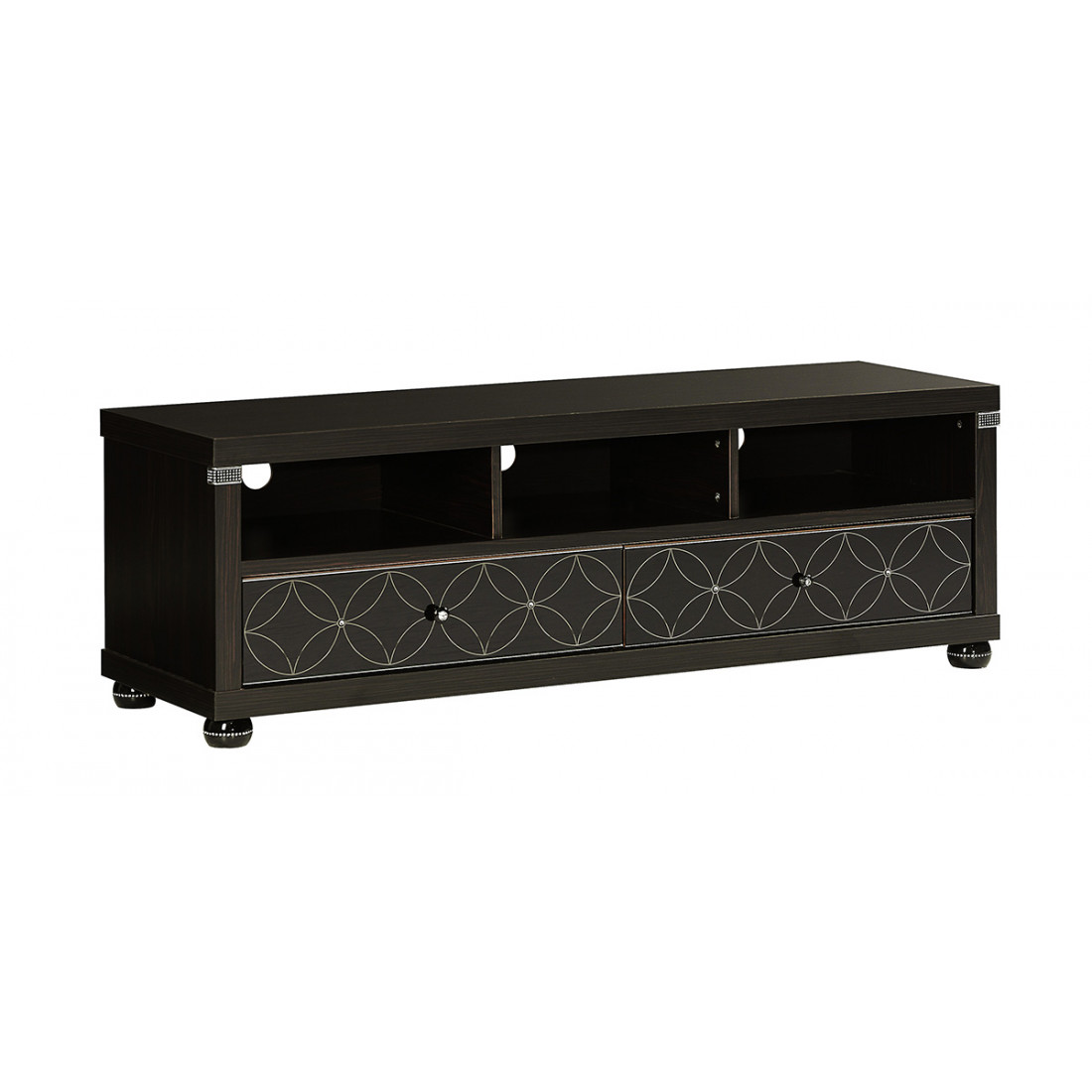 Тумба под телевизор MIRA-07 (венге) серии Мира от Беллона обладает лаконичной конструкцией, современной удлиненной формой и респектабельным дизайном. Эффектности модели добавляет стильное оформление боковых распашных створок из каленого черного стекла – нанесенный стилизованный рисунок сопровождается украшением стразами Swarovski. Купить невысокую длинную тумбу под ТВ и аппаратуру в цвете венге предлагаем по акции сниженной цены.